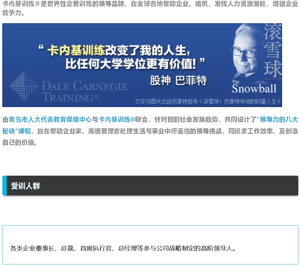 7月13日青岛市第58期高级工商管理实战研修班课程预告——卡内基“领导力的八大秘诀”