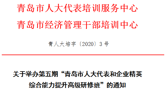 关于举办第五期“青岛市人大代表和企业精英 综合能力提升高级研修班”的通知